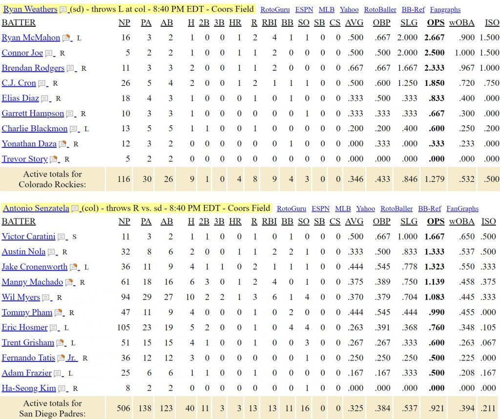 - The Padres are 0-4 in the last 4 meetings in Colorado.