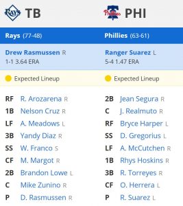 ODDS: Rays -110 / Phillies +100