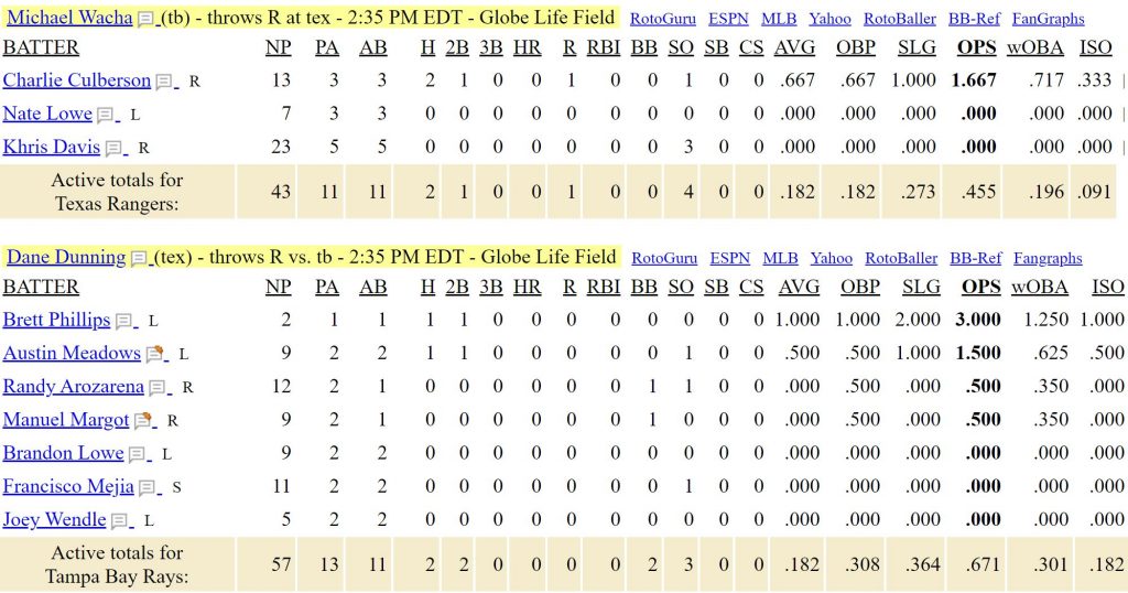 - The Rangers are 0-4 in Dunning’s last 4 starts after scoring 2 runs or less in their previous game.